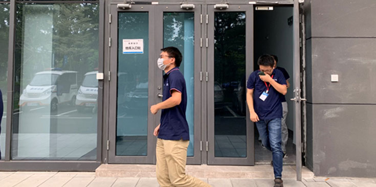 到達(dá)一樓指定位置后,各部門(mén)人員開(kāi)始集合報(bào)數(shù),確定所有員工到齊。