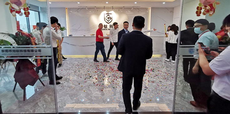 2021年4月8日早上8點,在集團(tuán)總部領(lǐng)導(dǎo)們、股東們和眾多光鈦公司同事們的熱列掌聲中,揭下紅綢,寓意著東莞市光鈦科技有限公司正式開張營業(yè),開門大吉。