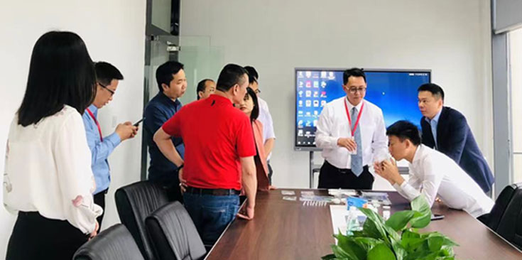 隨后,公司總經(jīng)理鄭海鵬邀請公司董事長鄭建文、集團(tuán)總裁陳健民等人來到光鈦會議室,并對公司產(chǎn)品、行業(yè)情況、市場前景等情況作了詳細(xì)、專業(yè)的介紹。